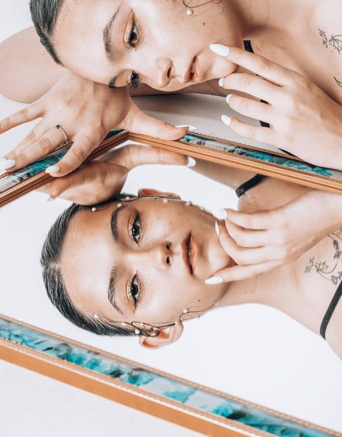 This was my first beauty editorial project at University. I wanted to explore different ways beauty can be seen in a more literal sense by using reflections and unusual camera angles.
